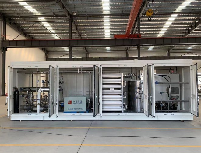 氣化增壓計量撬是把液態(tài)氣體通過高壓柱塞泵增壓至氣體需要的出口壓力,高壓液態(tài)氣體通過氣化器氣化,輸出穩(wěn)定高壓氣體的一種裝置。增壓計量撬由撬塊、箱體、高壓柱塞泵、控制閥、流量計、過濾器、出氣管、進(jìn)氣匯管、進(jìn)氣口、出氣匯管、排污管和安全放氣閥等部件組成。根據(jù)用戶需求可增加加臭等其它系統(tǒng)裝置。