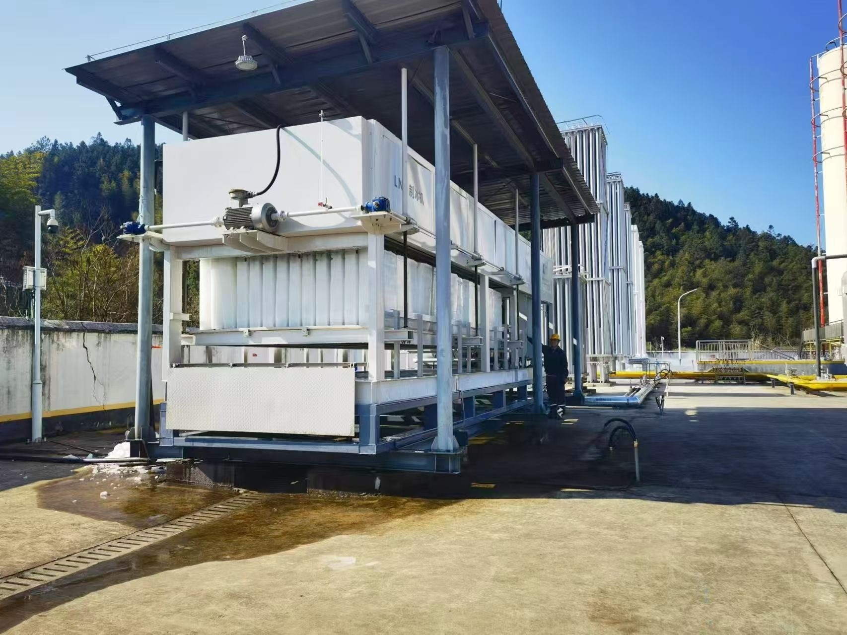 近日我司生產(chǎn)的LNG冷能制冰機(jī)順利交付,在龍巖華潤(rùn)燃?xì)馍虾计戒丩NG冷能利用項(xiàng)目中運(yùn)行通暢,日出冰量30T,極大地為企業(yè)節(jié)約能源,實(shí)現(xiàn)節(jié)能減排,綠色生產(chǎn),為企業(yè)增產(chǎn)增效。